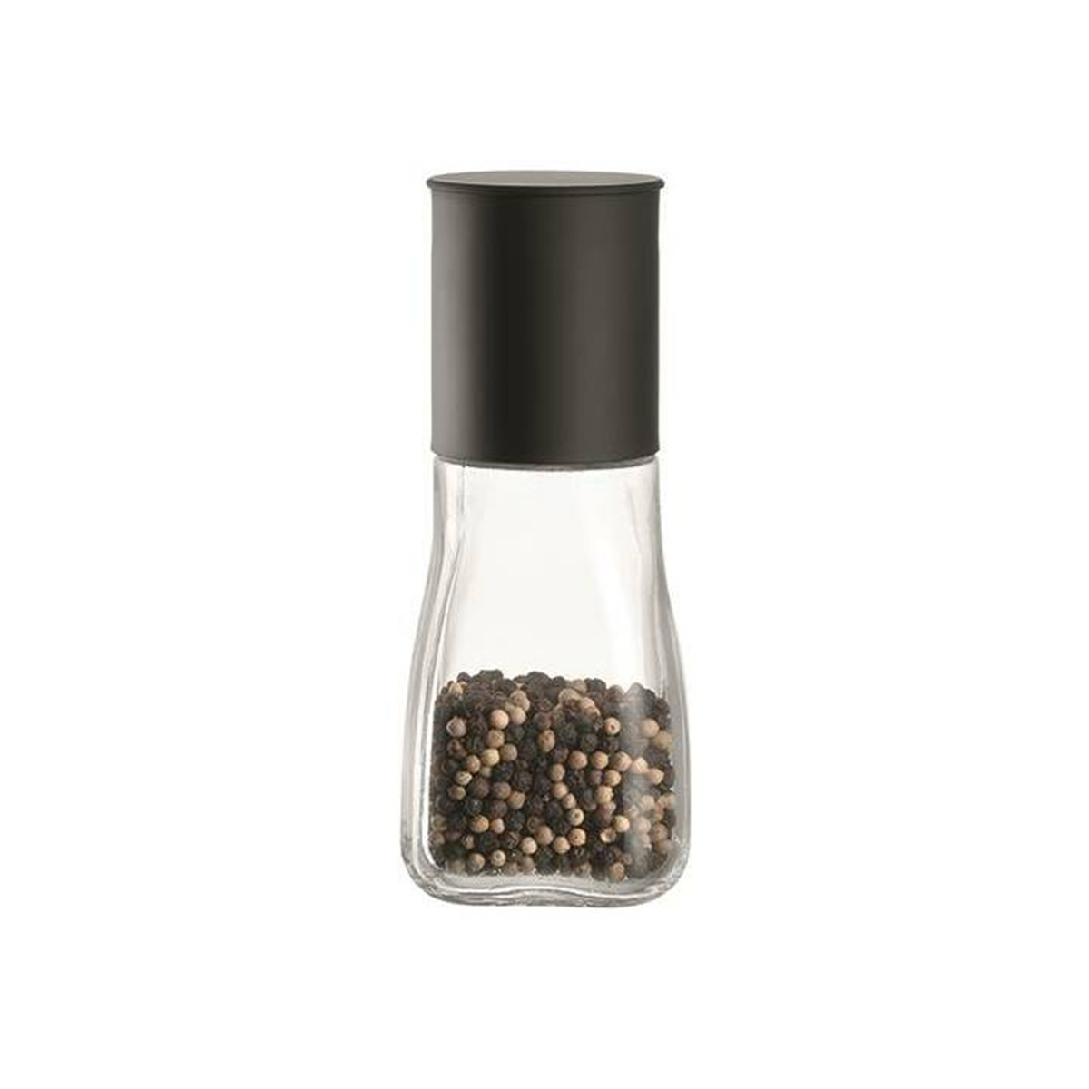 Stakleni mlin za biber. Mlinska jedinica je izrađena od keramike visokih performansi i vretena od nerđajuceg čelika. Dimenzije: 6 x 16cm.