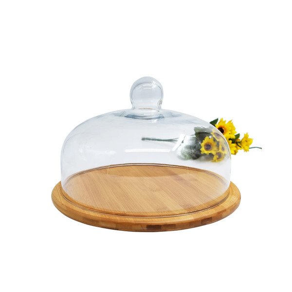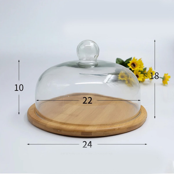 Zvono za odlaganje i čuvanje hrane Wood. Postolje je od drveta, zvono staklo. Dimenzija: fi.24cm h 18cm. Održavanje: ručno pranje drveno postplje posušiti suvom krpom..