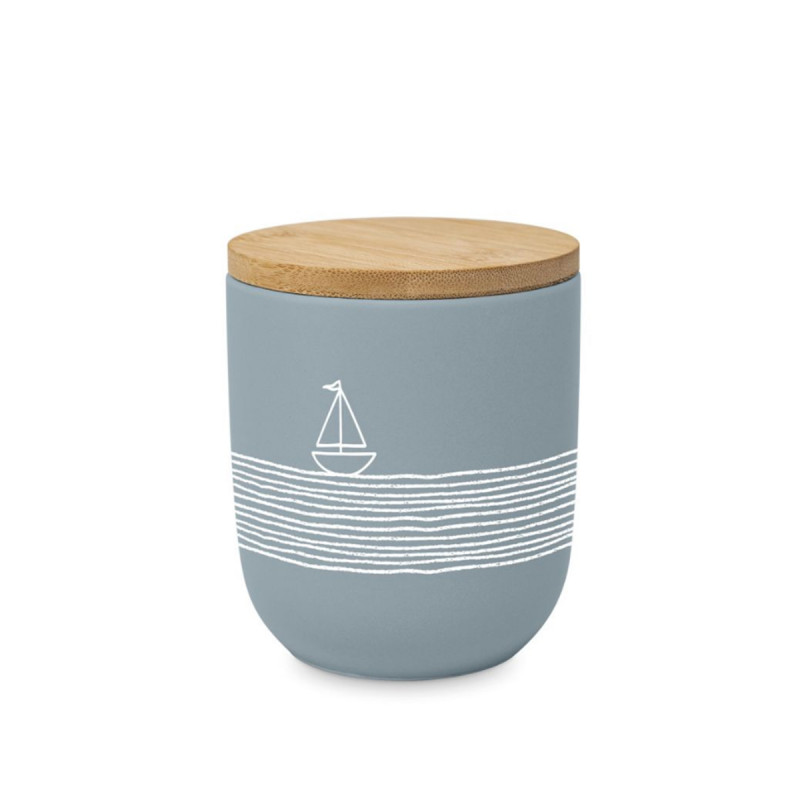 Tegla sa poklopcem napravljena od materijala New Bone China plave boje, poklopac je napravljen od bambusa, kapacitet je 350ml. Dimenzije:10x9x10cm. Napomena: Moze se stavljati u mikrotalasnu rernu I moze se prati u masini za sudove.