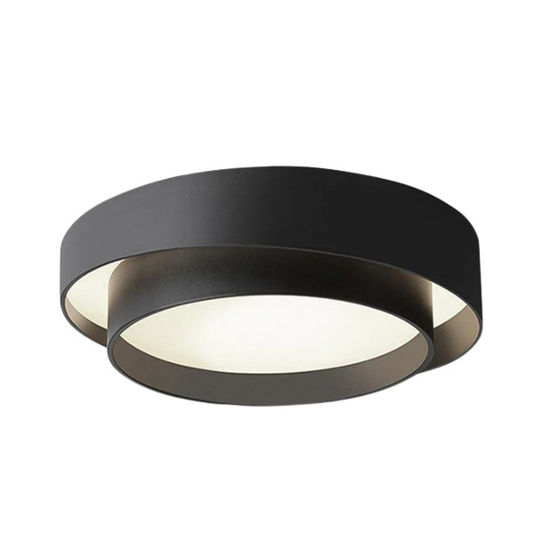 Plafonjera napravljena od crnog metala i mat difuzora. Izvor svetlosti integrisani LED, snage 20W. Dimenzije: H12 x fi. 39cm.