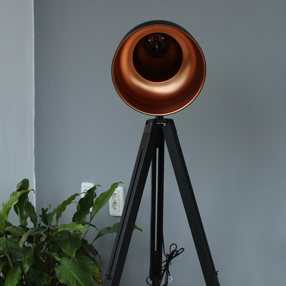 Podna lampa, postolje od drveta , difuzor od metala. Sijalično grlo E27 za inkadescentni izvor svetlosti max. 1 x 60W ili Led sijalica E27 9W, 220-230V. Svetiljka se isporučuje bez izvora svetla. Dim. H160cm