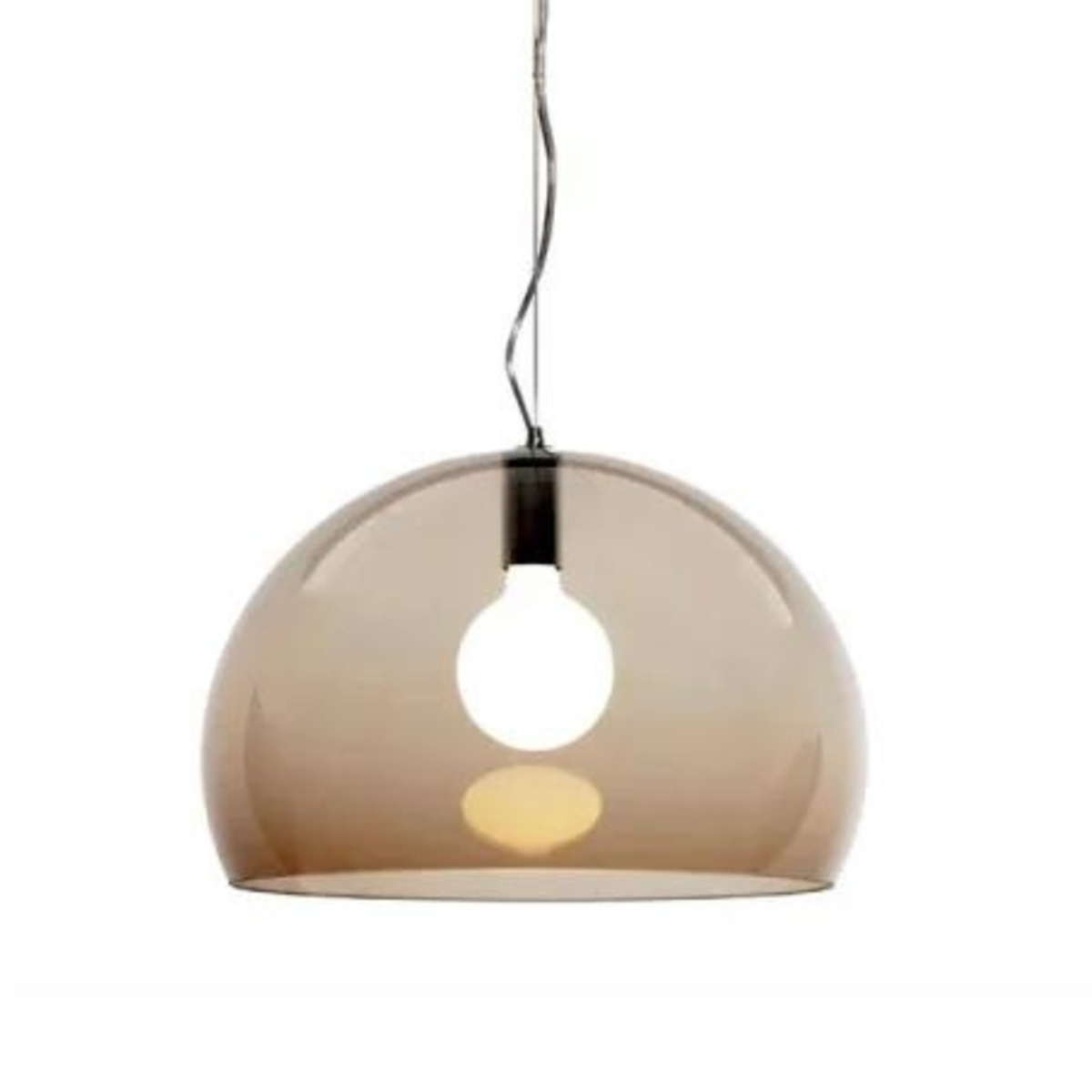 Visilica FL/Y od transparentnog PMMA u braon nijansi. Pogodna isključivo za unutrašnju upotrebu, u okruženjima gde otpornost na vatru nije osnovni zahtev. Izvor svetlosti: E27 LED max. 15W, 2700K, 1350lm. Dizajner: Ferruccio Laviani. Dimenzije: 52x52 × 38 cm