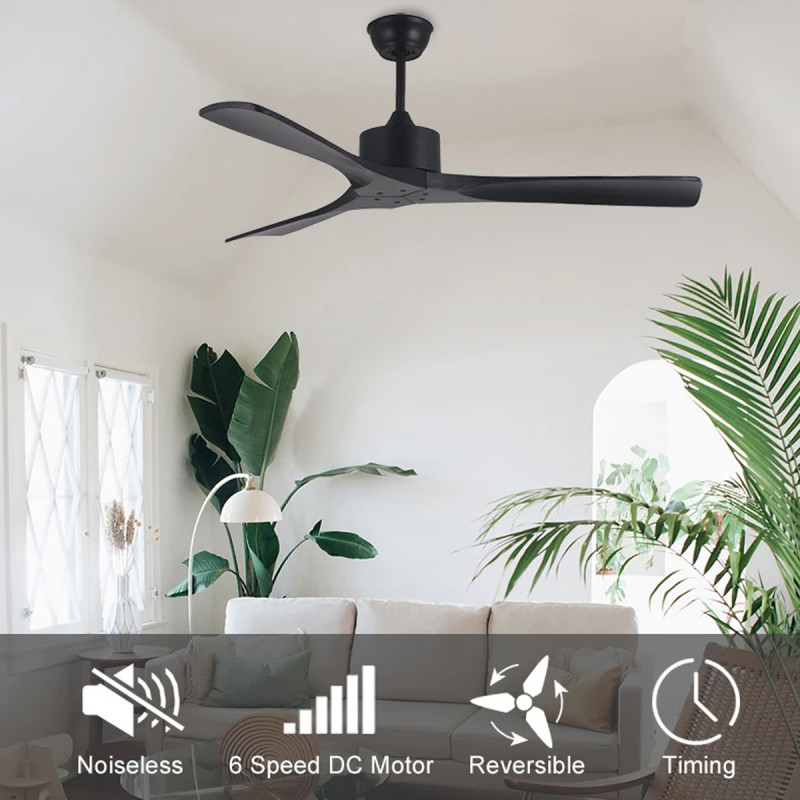 PlafonskI ventilator KBS 5209 BLACK-BLACK TUYA Kućište je izrađeno od metala i drveta u crnoj boji. Motor snage 35W sa 6 brzina. Brzina ventilatora je podesiva pomoću daljinskog upravljača, a snaga je dovoljna za prostorije do 8-15 m. Dimenzije:D: 132 H:32,5/45cm