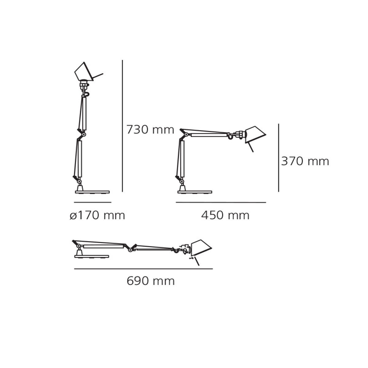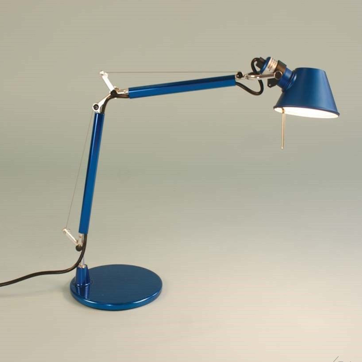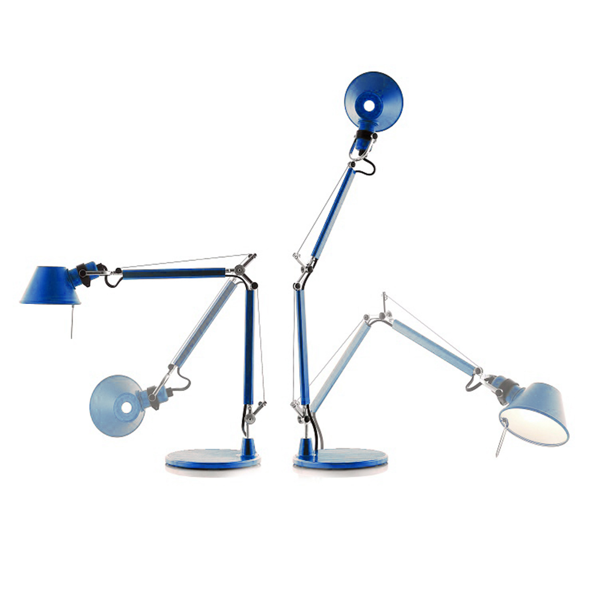 Stona lampa Tolomeo Micro je deo porodice stonih lampi Tolomeo. Tolomeo Micro nam dolazi sa bazom i podupirujućim telom od poliranog aluminijuma dok je difuzor izrađen od eloksiranog aluminijuma. Boja plava. Na standardno sijalično grlo E14 moguće je montirati i LED sijalicu, isporučuje se bez izvora svetla. Dim. 45x37cm; max H 73cm; Dizajn lampe: Michele De Lucchi i Giancarlo Fassina.