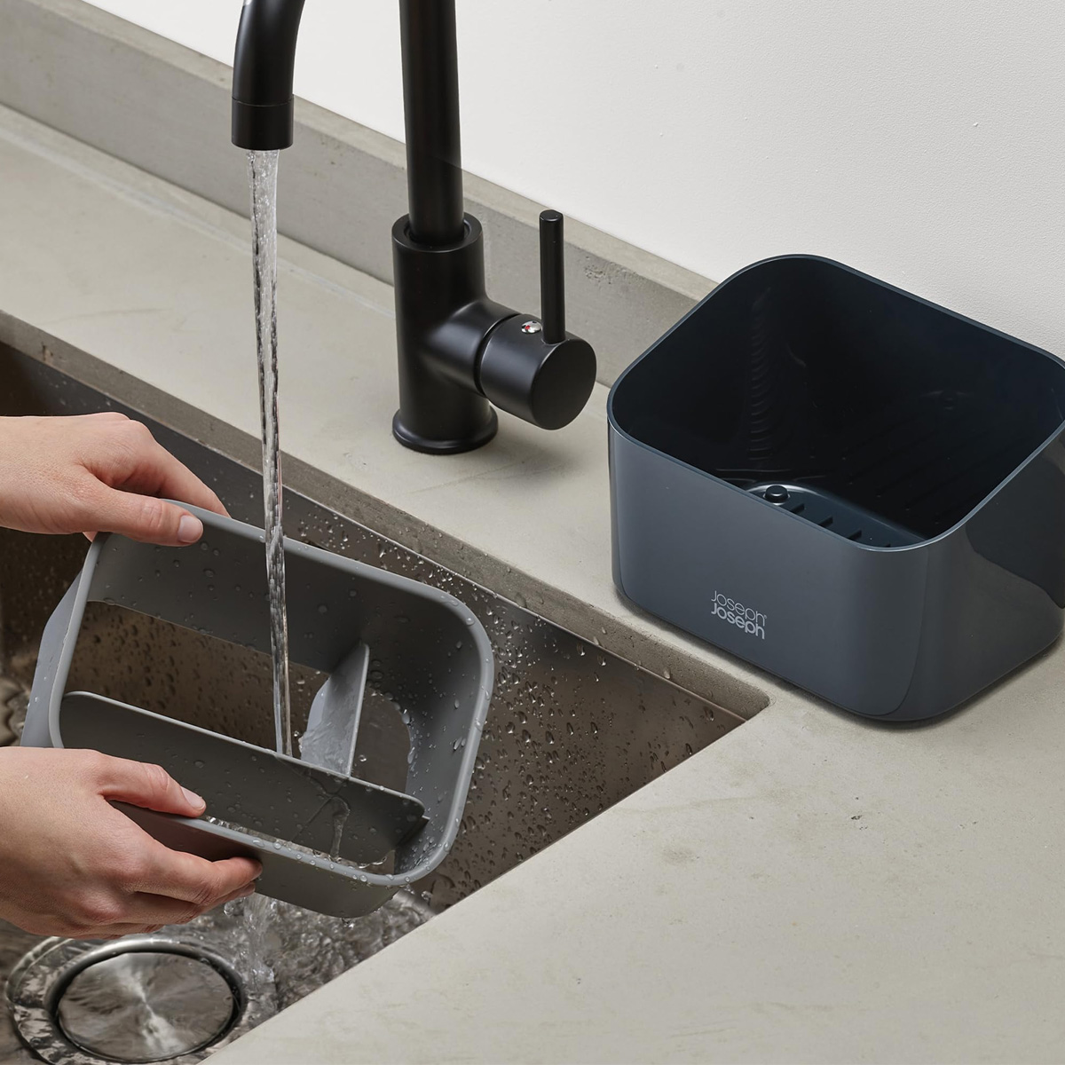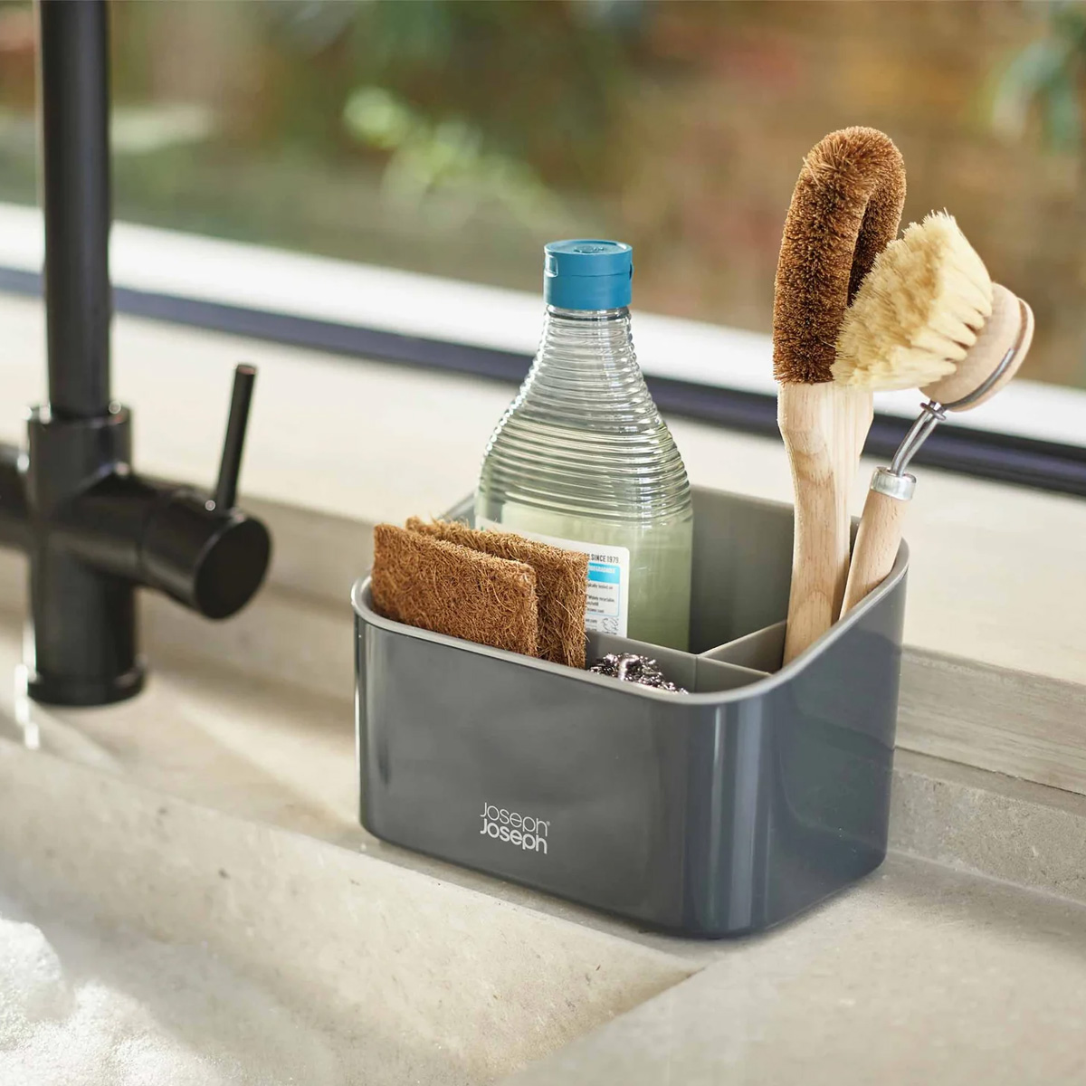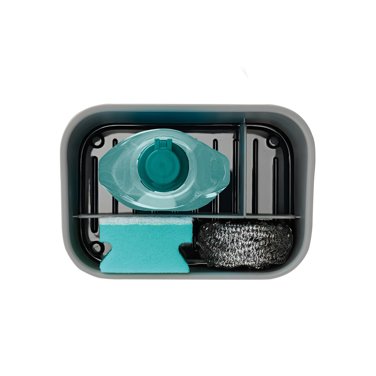 Odvojeni odeljci za četke, sunđere i boce tečnosti za pranje posuđa. Rastavlja se radi lakšeg čišćenja. Dimenzije: 17,8 x 12,2 x 11,8 cm