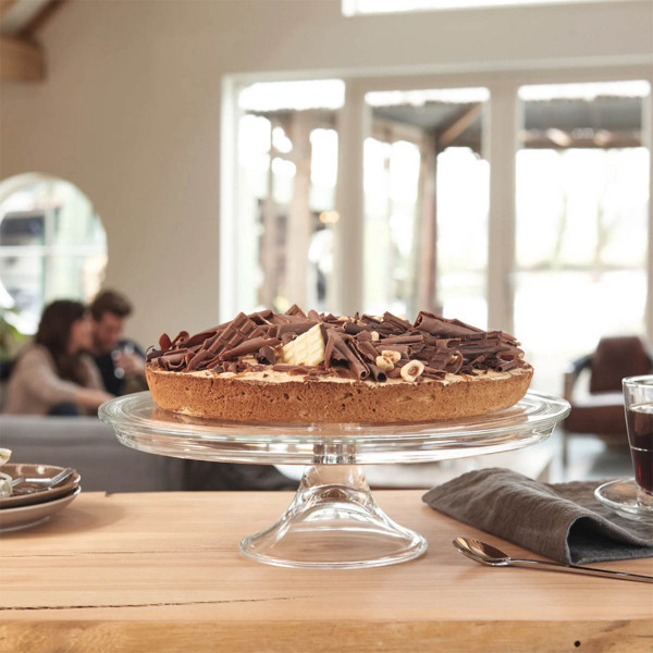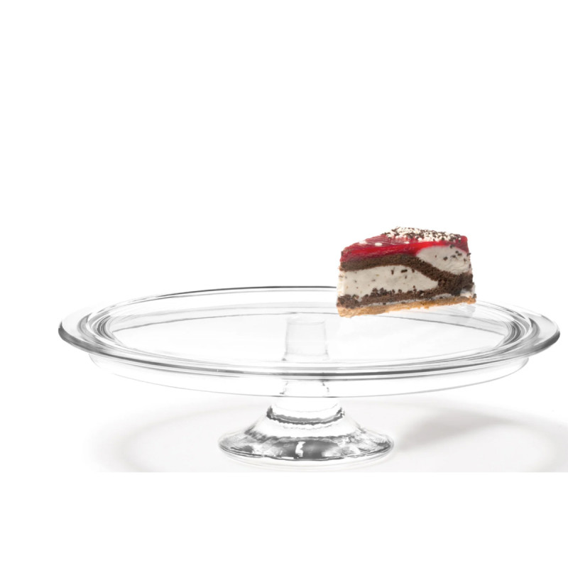 Ukrasni tanjir za tortu sa stopom,od providnog stakla. Dimenzije:H12cm FI32cm