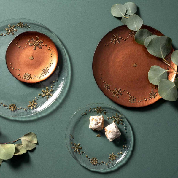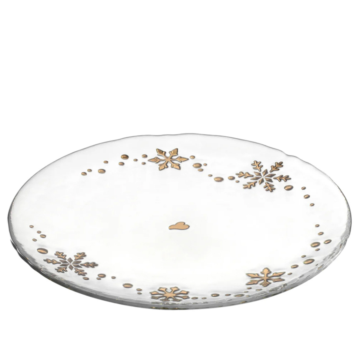 Tanjir od stakla tip AUTENTiCO, sa detaljima pahuljica. Dimenzije: fi.32 x H1cm.