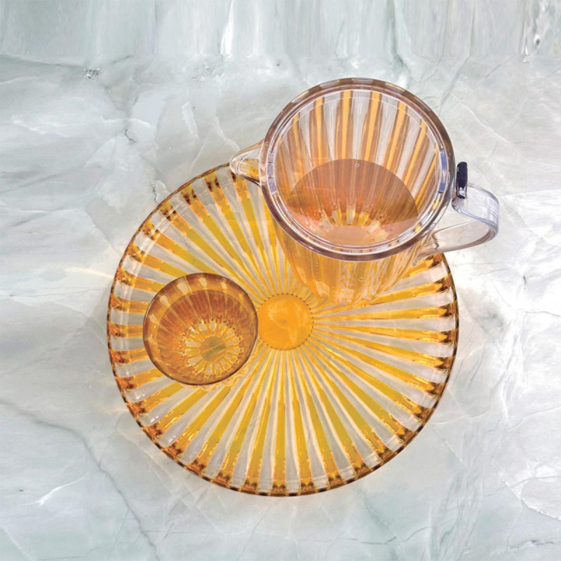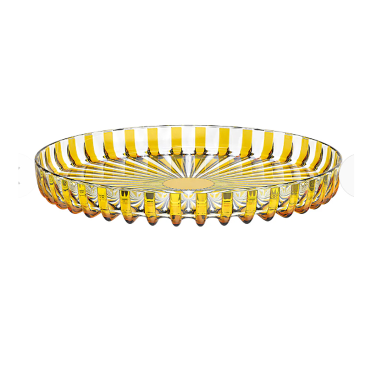 Poslužavnik napravljen od reciklirane bio-plastike, žute boje. Dimenzije: fi.31 x H3,5cm.