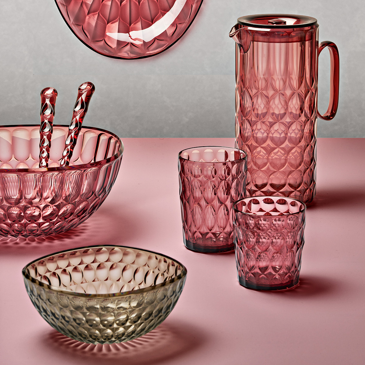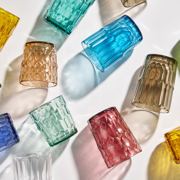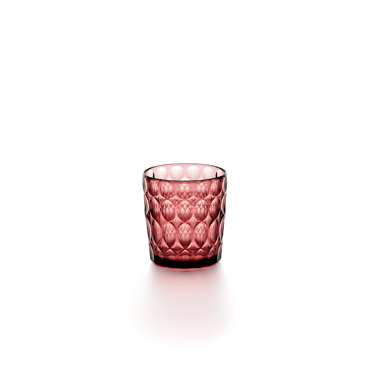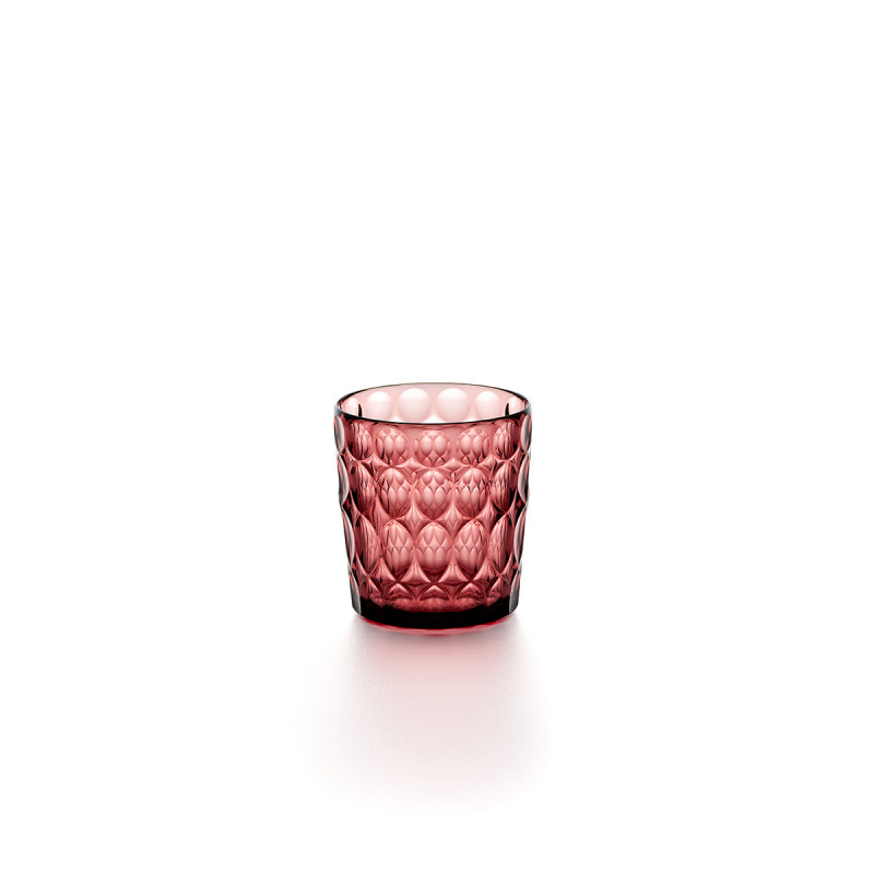 Čaša crvene boje, napravljena od bio-akrilnog kristala. Dimenzije:fi. 8,5xh 9,2 cm