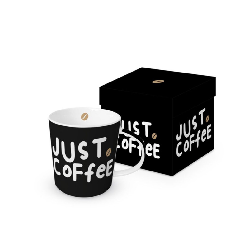 Šolja crne boje sa natpisom bele boje. Napravljena od New Bone China materijala. Isporučuje se u dekorativnom pakovanju. Dimenzije: 9,7 x 9, x 9,7cm. Napomena: Moze se stavljati u mikrotalasnu rernu I moze se prati u masini za sudove.