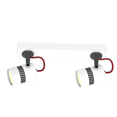 Spot lampa na šini, , postolje i difuzor od metala bele boje sa crnim detaljem. Izvor svetlosti: 2x Gu10 led 5W. Dimenzije: 28 x 8 x 12cm. Svetiljka se isporučuje sa izvorom svetla.