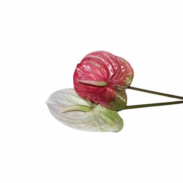 Veštački cvet anturijum u beloj i pink boji, dužina cveta 47 cm.